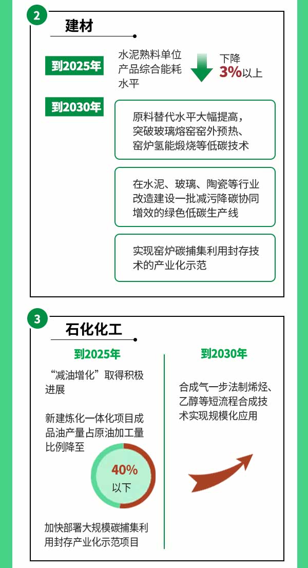 到2030年,原燃料替代水平大幅提高,突破玻璃熔窯窯外預熱、窯爐氫能煅燒等低碳技術,在水泥、玻璃、陶瓷等行業改造建設一批減污降碳協同增效的綠色低碳生產線,實現窯爐碳捕集利用封存技術產業化示范。