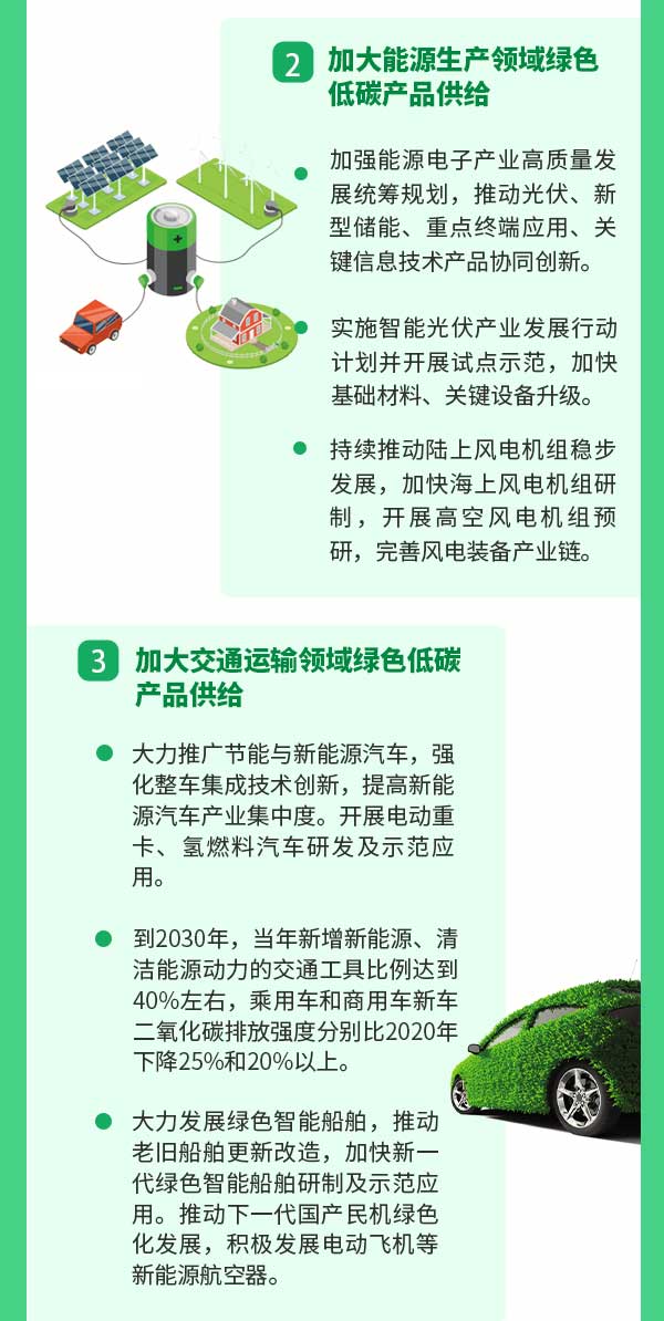 提高城市公交、出租汽車、郵政快遞、環衛、城市物流配送等領域新能源汽車比例,提升新能源汽車個人消費比例。開展電動重卡、氫燃料汽車研發及示范應用。加快充電樁建設及換電模式創新,構建便利高效適度超前的充電網絡體系。對標國際領先標準,制修訂汽車節能減排標準。