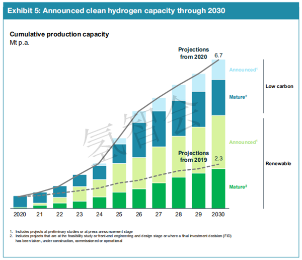 由于對氫的關注日益增加,加上政府的支持不斷增加,宣布的2030年清潔氫的產能由先前的230萬噸增至每年670萬噸。 換句話說,過去一年,玩家已經宣布了三分之二的清潔氫氣產能。