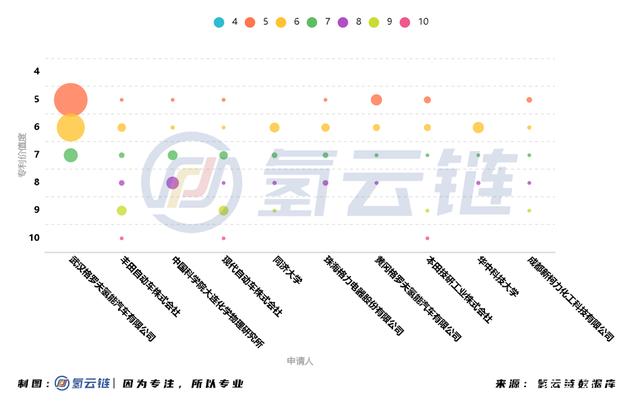 從專利價值來看,格羅夫排名第一;豐田汽車排名第二;中科院大連化物所排名第三;現代汽車、同濟大學、格力電器、華中科技大學、成都新柯力化工排名依次靠后。