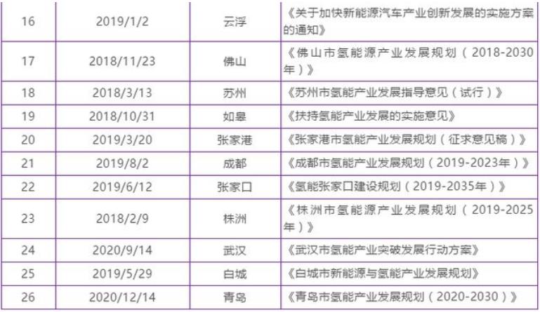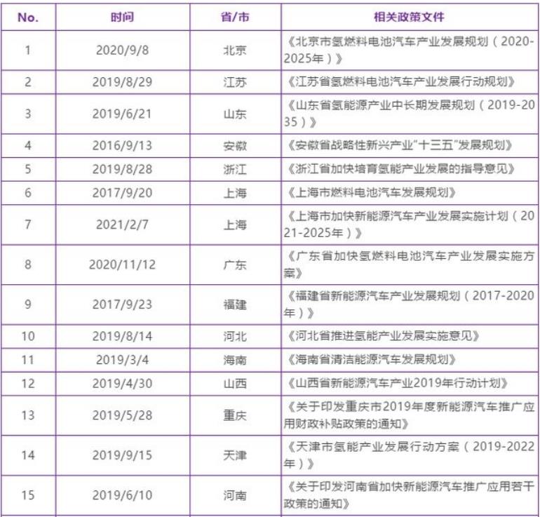 1.各省、市出臺的氫能產業發展規劃及引導性政策