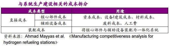 加氫系統(tǒng)相關部件可直接采購組裝,成本可分為設備成本和人工成本。