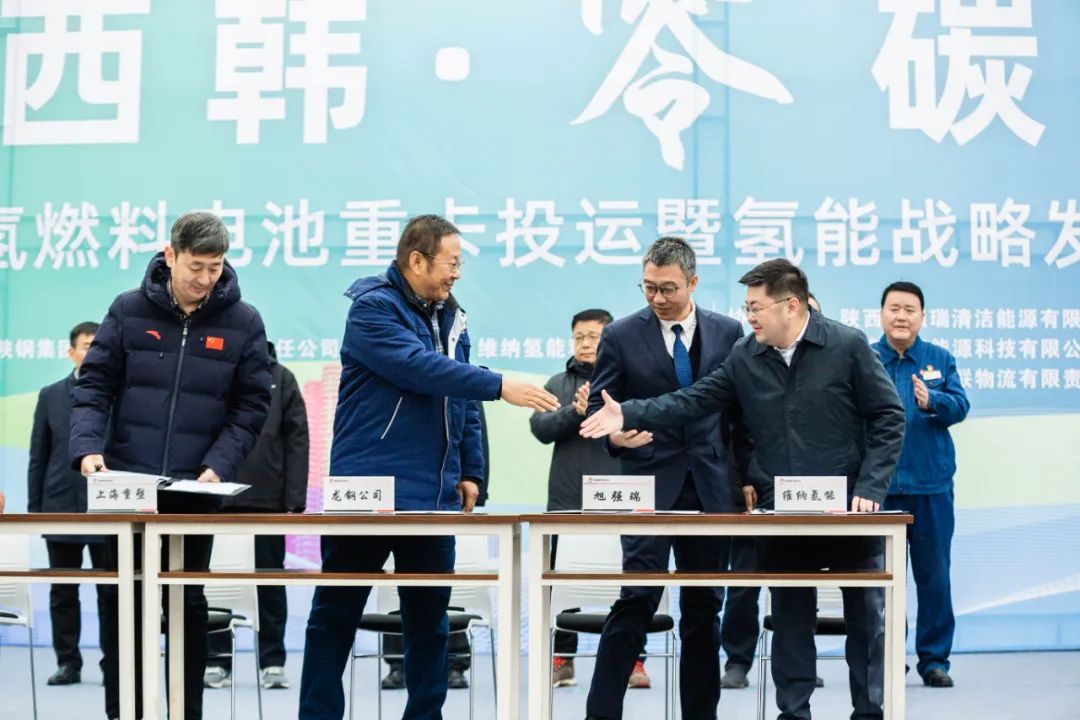 1月18日,由陜西省工業(yè)和信息化廳、陜西省能源局、韓城市人民政府指導(dǎo),陜鋼集團(tuán)陜西龍門鋼鐵有限責(zé)任公司(以下稱:龍鋼公司)主辦,維納氫能承辦,陜西旭強(qiáng)瑞清潔能源有限公司、上海重塑能源科技有限公司、北京氫璞創(chuàng)能科技有限公司協(xié)辦的“龍門鋼鐵首批氫燃料電池重卡投運(yùn)暨氫能戰(zhàn)略發(fā)展簽約儀式”在韓城市龍門鋼鐵廠區(qū)成功舉辦。