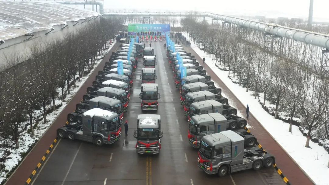 在會場所有領(lǐng)導(dǎo)的見證下,維納氫能執(zhí)行董事宋琦向陜鋼集團(tuán)龍鋼公司黨委書記、董事長陳驍交付車輛鑰匙,伴隨韓城市委副書記張景鋒的宣布,33輛重卡鳴笛啟動,以氫能重卡為核心的綠色運(yùn)輸工作正徐徐展開。