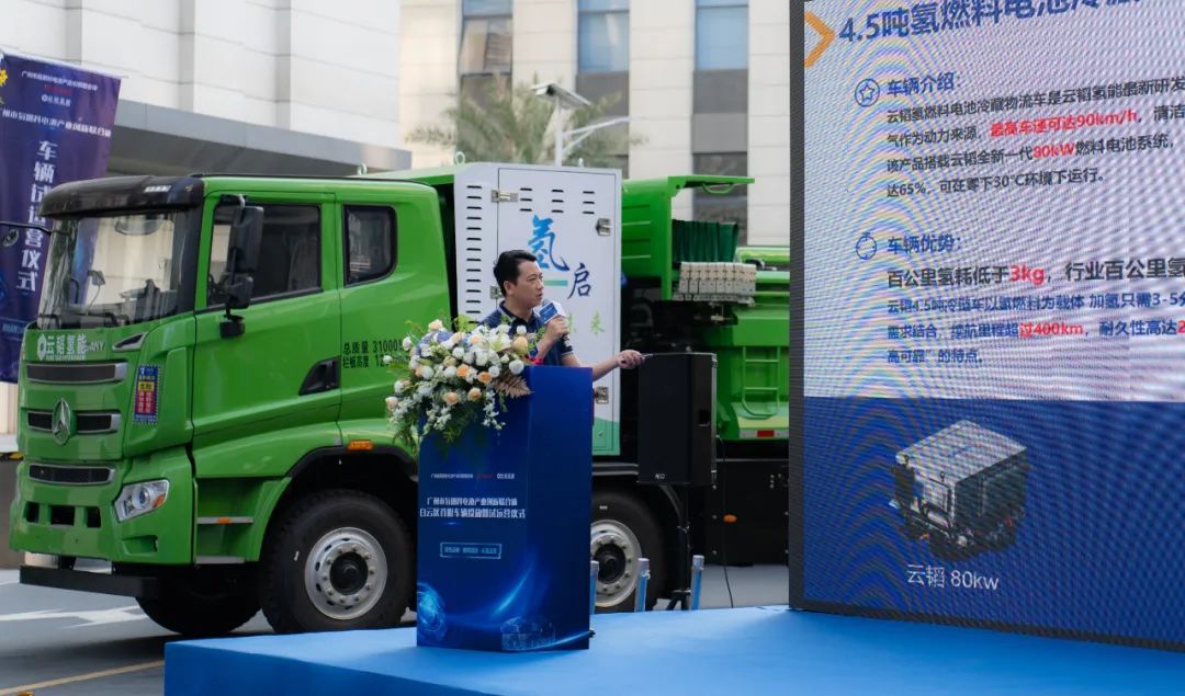 本次車輛試運營儀式在廣州市發(fā)展和改革委員會、白云區(qū)人民政府的指導(dǎo)下,由廣州市氫燃料電池產(chǎn)業(yè)創(chuàng)新聯(lián)合體、廣東云韜氫能科技有限公司共同主辦。