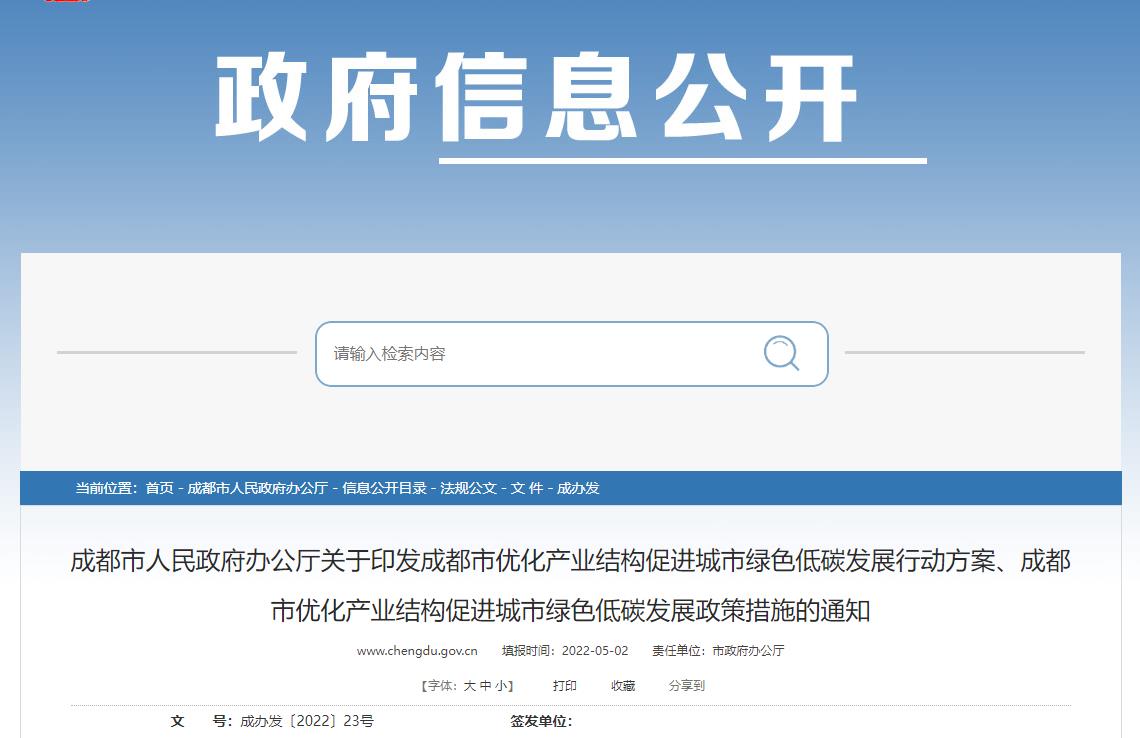 成都市人民政府辦公廳關于印發成都市優化產業結構促進城市綠色低碳發展行動方案、成都市優化產業結構促進城市綠色低碳發展政策措施的通知