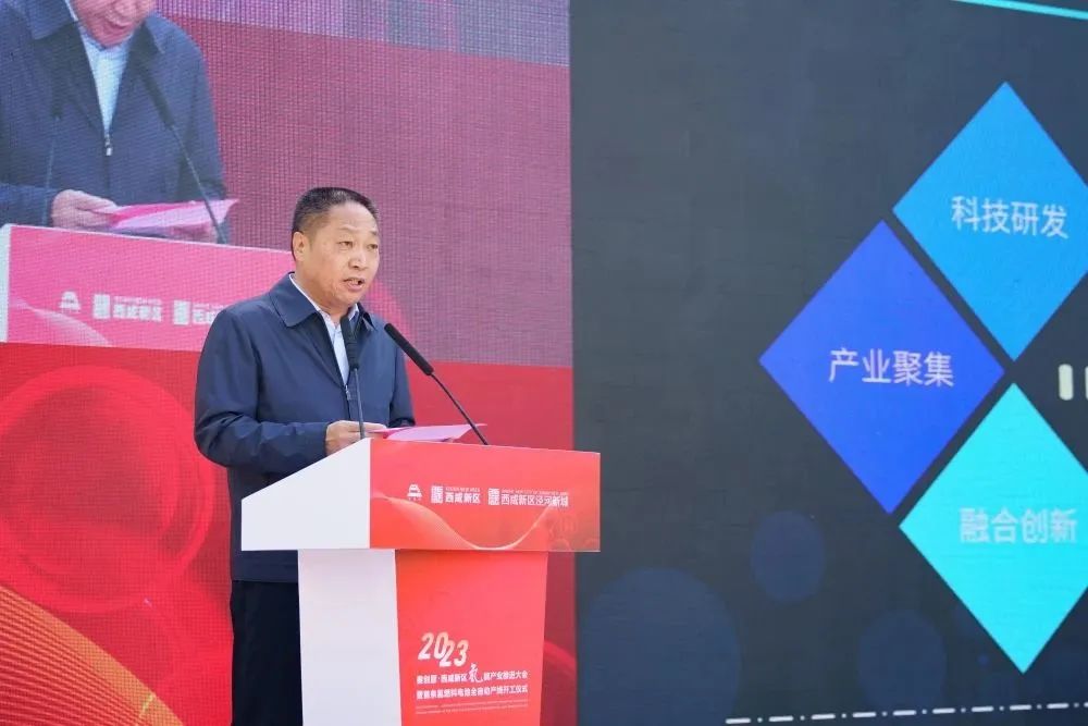 2023氫能產(chǎn)業(yè)推進大會暨首條氫燃料電池全自動產(chǎn)線開工儀式在涇河新城智造創(chuàng)新產(chǎn)業(yè)園隆重舉行。西咸新區(qū)黨工委書記楊仁華,中國科學(xué)院院士、西安交通大學(xué)能動學(xué)院教授、博導(dǎo)陶文銓,西安市發(fā)改委主任李西寧,西咸新區(qū)黨工委委員、管委會副主任陳輝,西咸新區(qū)黨工委委員、涇河新城黨委書記、管委會主任張宏偉,西安市投資合作局副局長任偉,陜西旭強瑞清潔能源有限公司董事長王海峰出席并見證簽約。