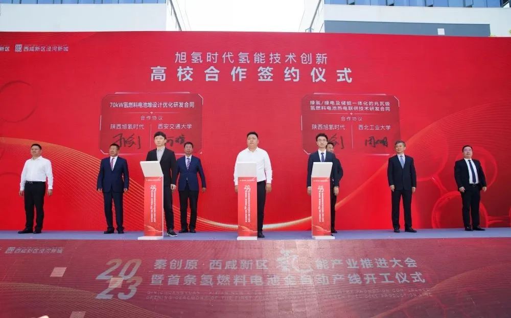 為加快產(chǎn)線建設(shè),子公司旭氫時代與西安交通大學(xué)、西北工業(yè)大學(xué)簽訂氫能技術(shù)創(chuàng)新合作協(xié)議,與5家氫能企業(yè)簽訂氫燃料電池自動化產(chǎn)線核心供應(yīng)商合作協(xié)議。