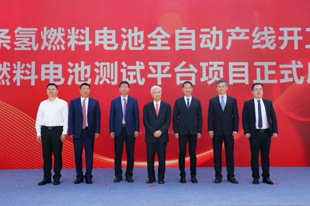 伴隨著現(xiàn)場熱烈的掌聲,與會嘉賓一同按下氫燃料電池全自動生產(chǎn)線啟動裝置。