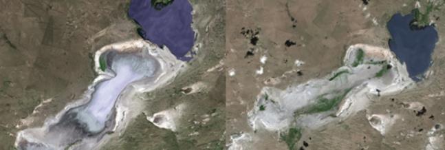李赫埈展示了“查干諾爾鹽堿干湖盆地”治理前后的衛星圖片。相比之下,治理后,該地區的綠色植被面積明顯增加,生機勃勃的綠色草原似乎出現在我們面前。