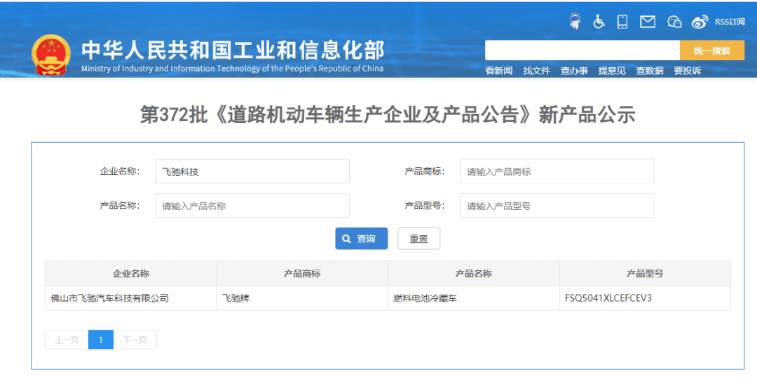 近日,由佛山市飛馳汽車科技有限公司(以下簡稱:飛馳科技)與現代汽車氫燃料電池系統(廣州)有限公司(以下簡稱:HTWO廣州)聯合開發的4.5T燃料電池冷藏車(FSQ5041XLCEFCEV3)被列入工信部第372批《道路機動車輛生產企業及產品公告》公示的新產品,這是現代汽車集團位于海外首個氫燃料電池系統生產基地投產后首次登上產品目錄。