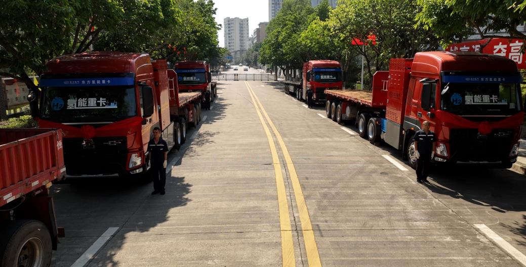 7月18日,東方氫能實現四川省首批49噸級氫能重卡交付投運,建成四川省首個氫能重卡物流園,助力開通了自貢市首條氫能物流示范線。氫能重卡物流園成功投運后,可為老工業城市轉型升級提供新的解決方案,助力自貢市加快打造“川南氫港”,建設氫能裝備制造先行區。交付的氫能重卡,搭載東方氫能研制的最新氫燃料電池動力系統,具有零碳排放、高功率、高集成度、高經濟性、高智能化、高國產化特點,相對于傳統燃油車,在實現零碳排放的同時,動力更強勁、運輸更高效。該批氫能重卡將全部用于東方鍋爐自貢基地產品和物資運輸,將有效推動東方鍋爐自貢基地運輸綠色化、智能化進程,具有非常可觀的示范價值、環保價值、經濟價值。