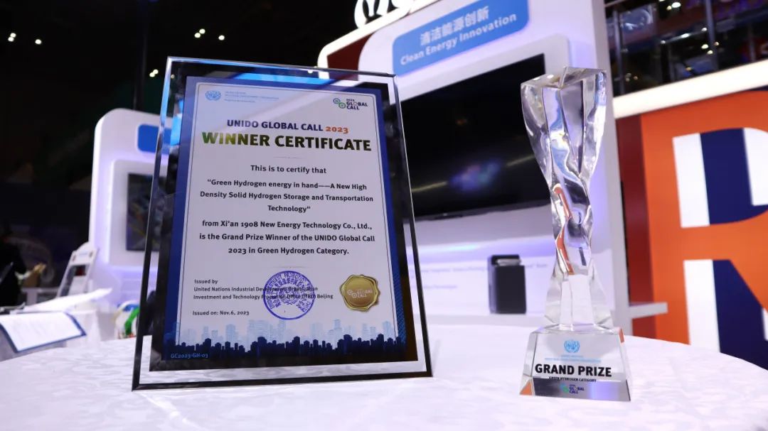 11月6日,“第六屆中國國際進(jìn)口博覽會第四次工業(yè)革命與智慧出行論壇暨聯(lián)合國工業(yè)發(fā)展組織全球方案征集活動頒獎儀式”在上海舉行,聯(lián)合國工業(yè)發(fā)展組織副總干事法圖·海達(dá)拉、聯(lián)合國駐華協(xié)調(diào)員常啟德、國際氫能協(xié)會副主席毛宗強(qiáng)等嘉賓出席活動。西安一九零八新能源科技有限公司榮獲聯(lián)合國工業(yè)發(fā)展組織2023全球方案征集活動綠色氫能賽道特等獎。