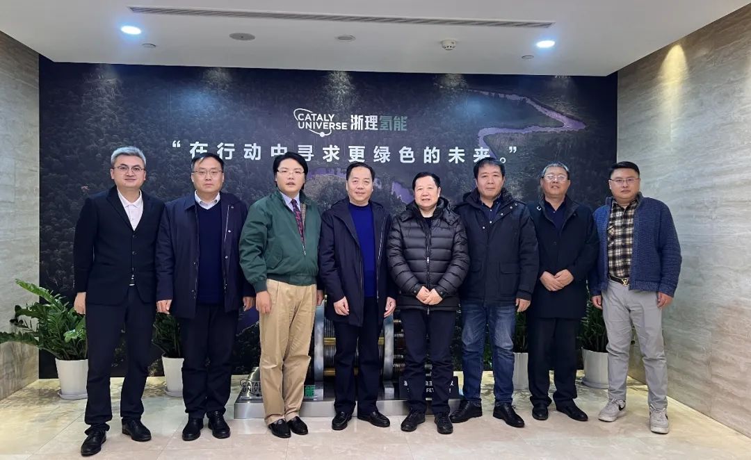 近日,勝利油田動力機械集團有限公司常務副總經理余雷海先生、副總經理王偉博士、銷售總經理馬博先生、總工程師齊志軍先生,銷售經理萬克熙先生一行到訪浙理氫能進行了實地考察并舉行了技術交流會議。彭桂云教授、祝鎵陽博士、CEO林瑋先生、首席科學家李仁宏博士等人表示熱烈的歡迎。
