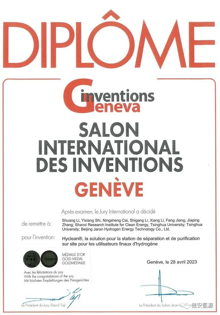 太強了!佳安氫源科研成果斬獲日內瓦國際發明“特許金獎!”