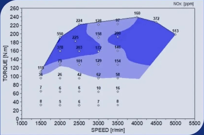 各熱效率點(diǎn)對(duì)應(yīng)的NOx排放量分布圖