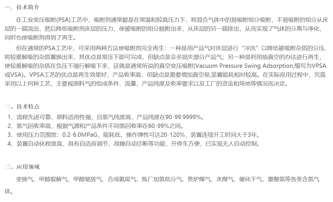 商品名稱:變壓吸附氫提純